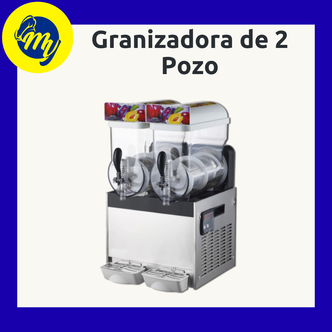 Granizadora importada de 2 tanques, de capacidad 15 litros cada tanque, con cuerpo fabricado en acero inoxidable, a 110v.